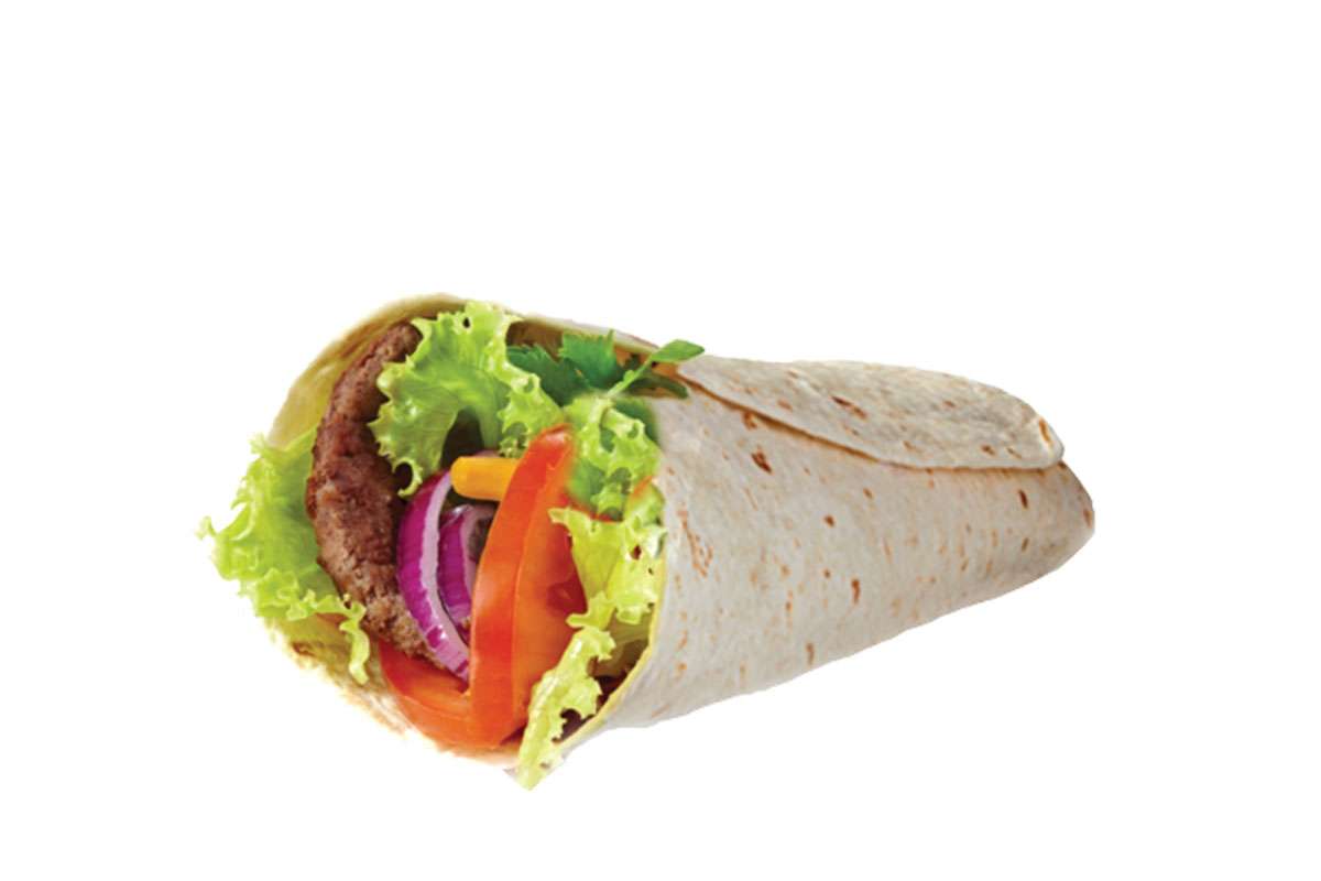 Delicious wrap with 80 grams of beef, fresh iceberg lettuce and tomato.