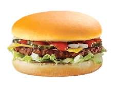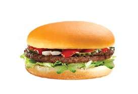 80 grams of beef accompanied with homemade sauce, fresh iceberg lettuce, tomato, cucumber, pickle and grilled onions.
