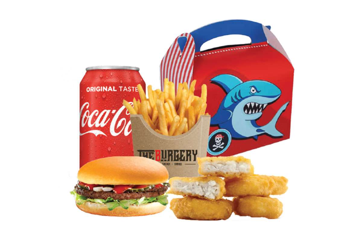 Kies uit: Nuggets (4 stuks), Hamburgertje (45 gram beef), Pepsi, Fanta Orange, Sprite, Energie (Slammers) en meer.