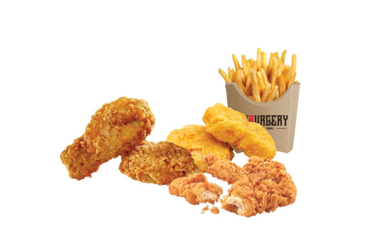 2 Hotwings, 2 Tenders, 2 Nuggets and a medium Fries
