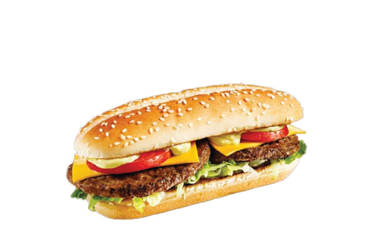 160 grams of beef accompanied with homemade sauce, fresh iceberg lettuce, tomato, cucumber, pickle and grilled onions.